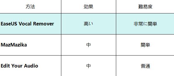 この記事では、オンラインカラオケメーカーを6つ紹介し、それぞれの長所と短所について詳しく解説しました。安全で便利なソフトウェアをお探しの方には、EaseUS Online Vocal Removerをボーカルリムーバーとして強くおすすめします。このソフトは軽量でありながら、高品質な結果を提供し、使いやすさも兼ね備えています。