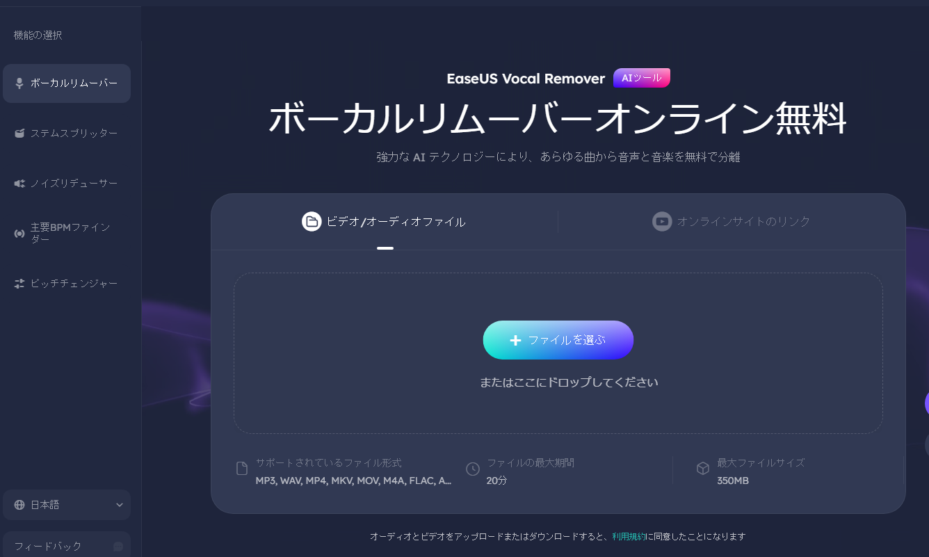 1. EaseUS Online Vocal Remover(イーザスボーカルリムーバー)